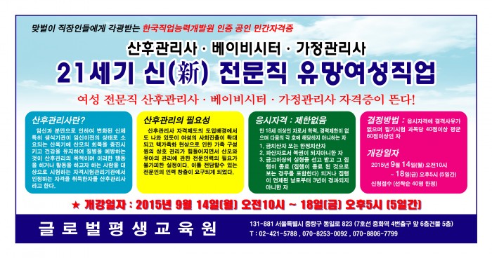 21세기 新 전문직 유만여성직업 1위 산후관리사. 베이비시터. 가정관리사..