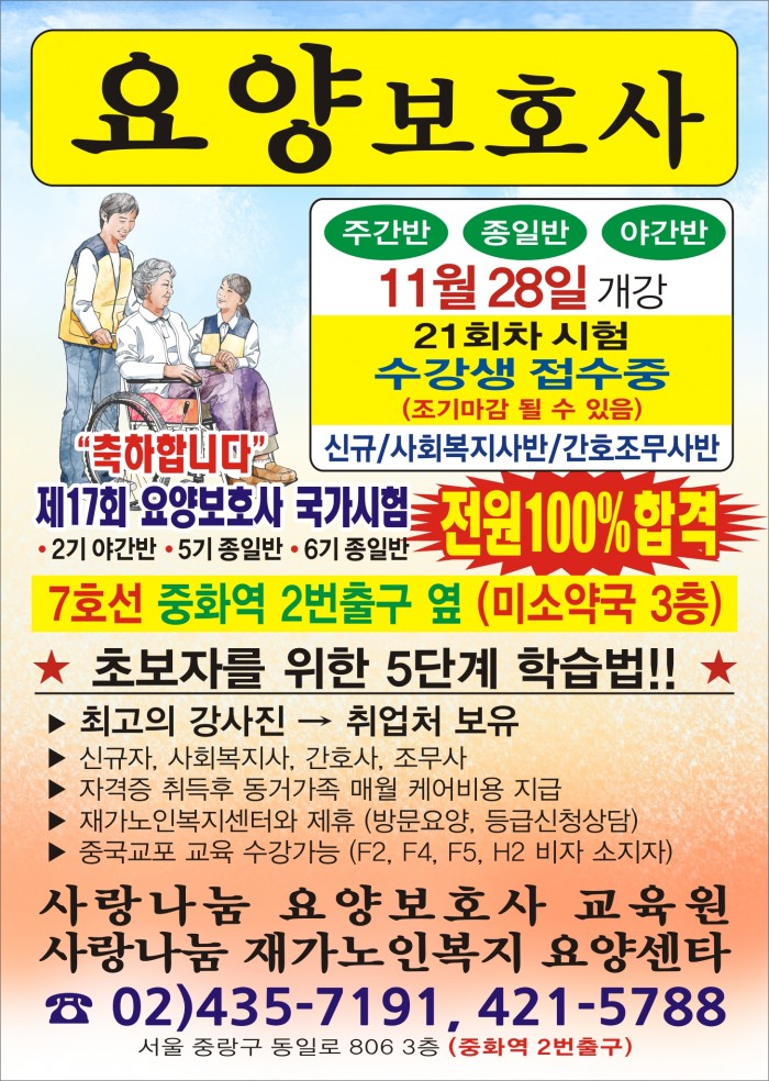제21회 시험대비 2016년 11월 28일 종일반 / 야간반 (신규/사회복지사/간호조무사)반 개강!!