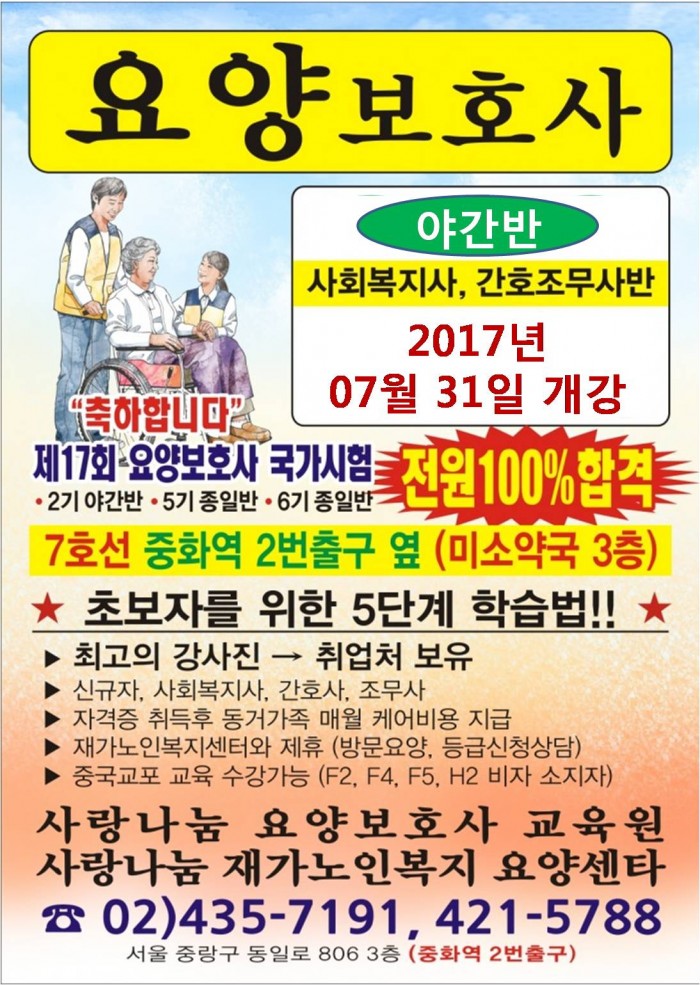 제23회 시험대비 2017년 07월 31일 야간반(신규/사회복지사/간호조무사)을 모집합니다.