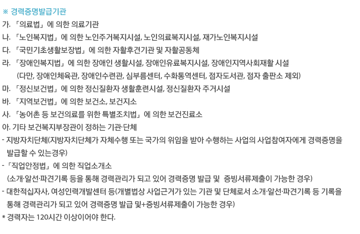 노인요양시설 또는 재가시설실습